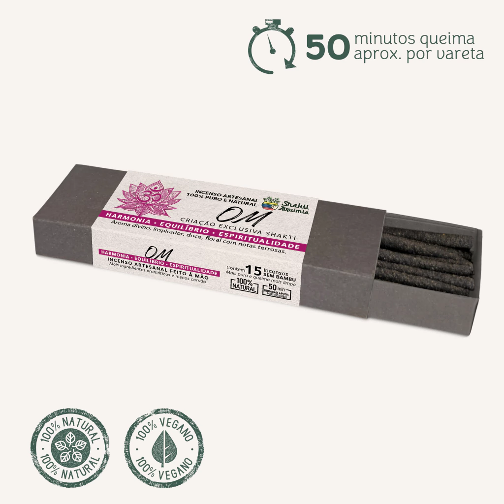 Criado pela alquimia entre sons e aromas, o incenso OM é uma expressão profunda de conexão com o sagrado. Sua fragrância única, ao mesmo tempo relaxante e aterradora, promove equilíbrio e serenidade.
